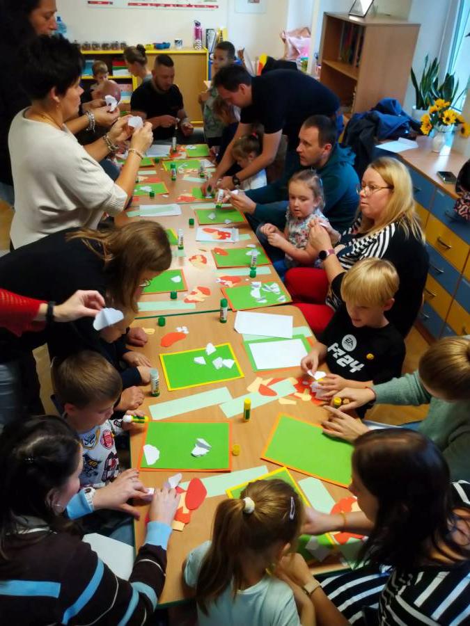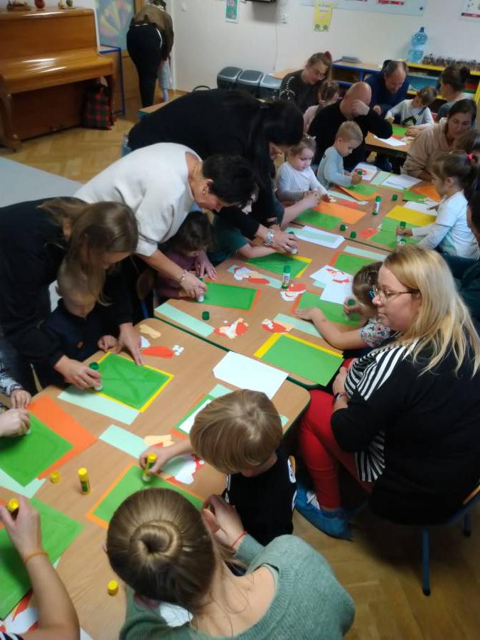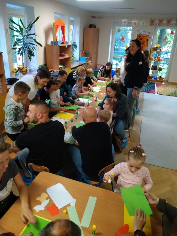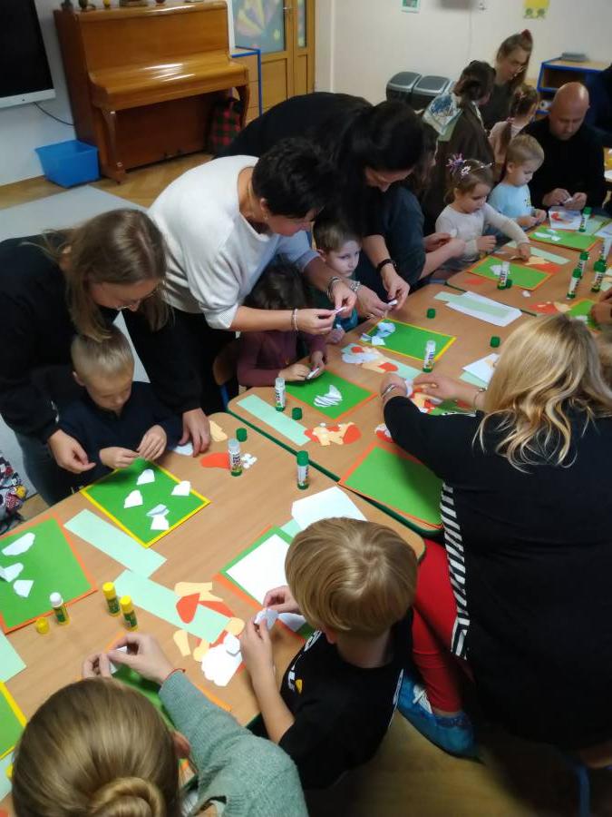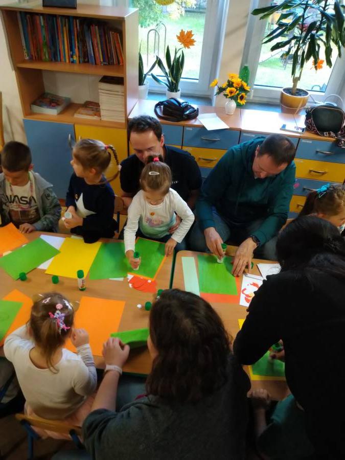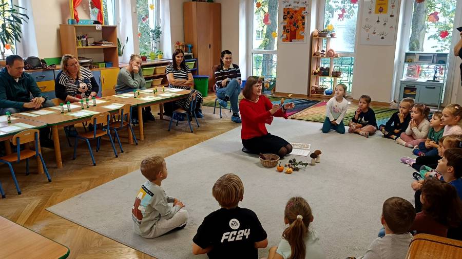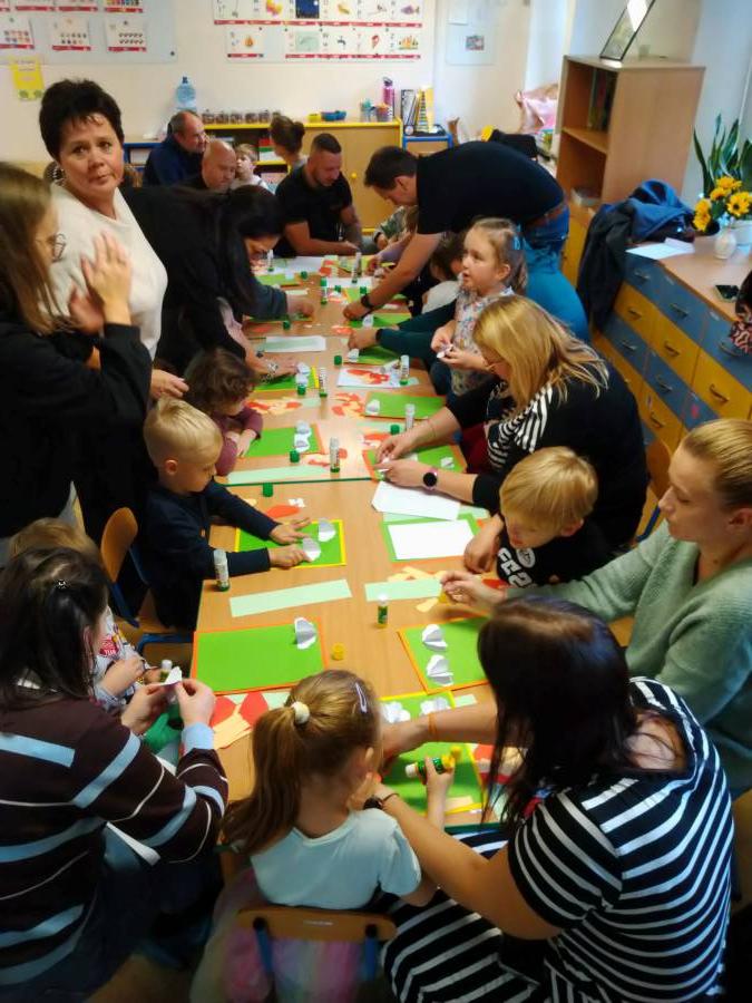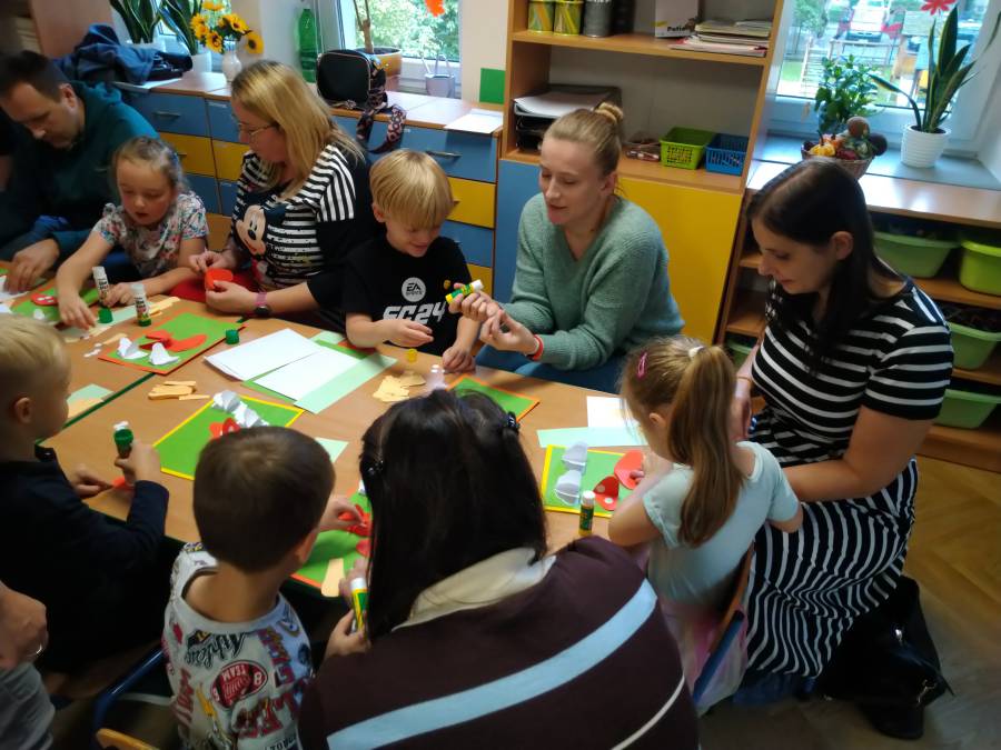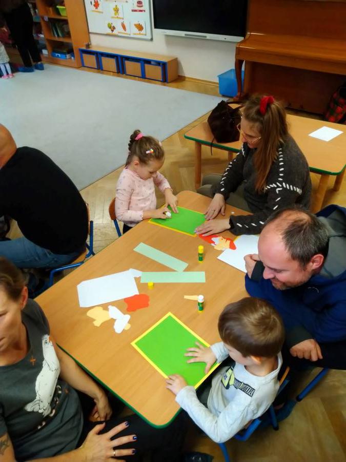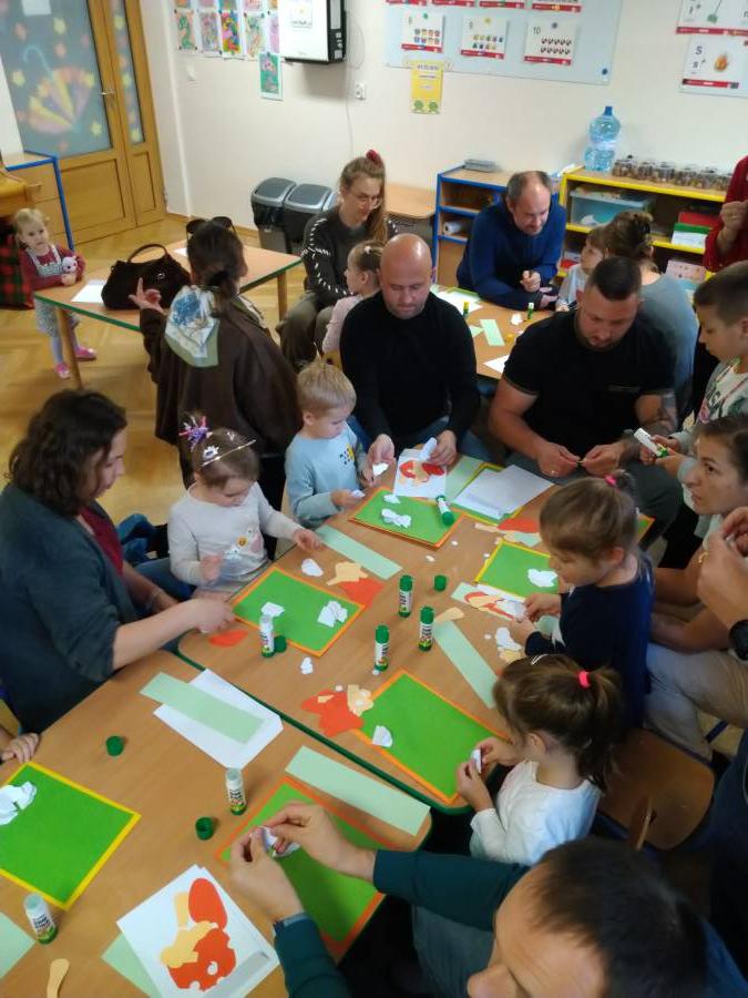 Jedną z form współpracy z rodzicami jest prowadzenie zajęć otwartych. Możliwość uczestniczenia w tego rodzaju zajęciach daje rodzicom obraz pracy nauczyciela z dzieckiem, pokazuje stosowane metody i formy pracy. Każdy z rodziców miał możliwość zaobserwowania swojego dziecka na tle grupy rówieśniczej. Celem zajęć w grupie Żabek było zaprezentowanie przez dzieci swojej wiedzy i umiejętności do tematu Pani Jesień dary niesie, a także zintegrowanie dzieci i rodziców. Przedszkolaki miały okazję pokazać swoim rodzicom jak się uczą poprzez zabawę i ile już potrafią. Zajęcia przebiegły w miłej atmosferze, Żabki chętnie pracowały pod kierunkiem nauczyciela oraz ze zrozumieniem słuchały poleceń. Dziękujemy rodzicom za to, iż mimo wielu obowiązków przybyli do przedszkola, aby towarzyszyć swoim dzieciom w tym wyjątkowym dniu.