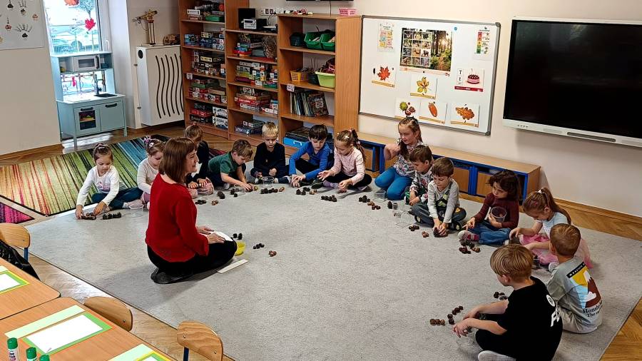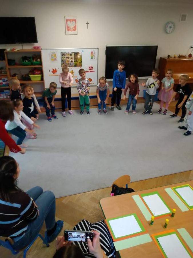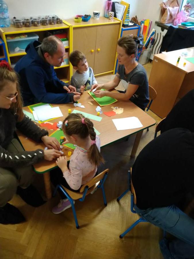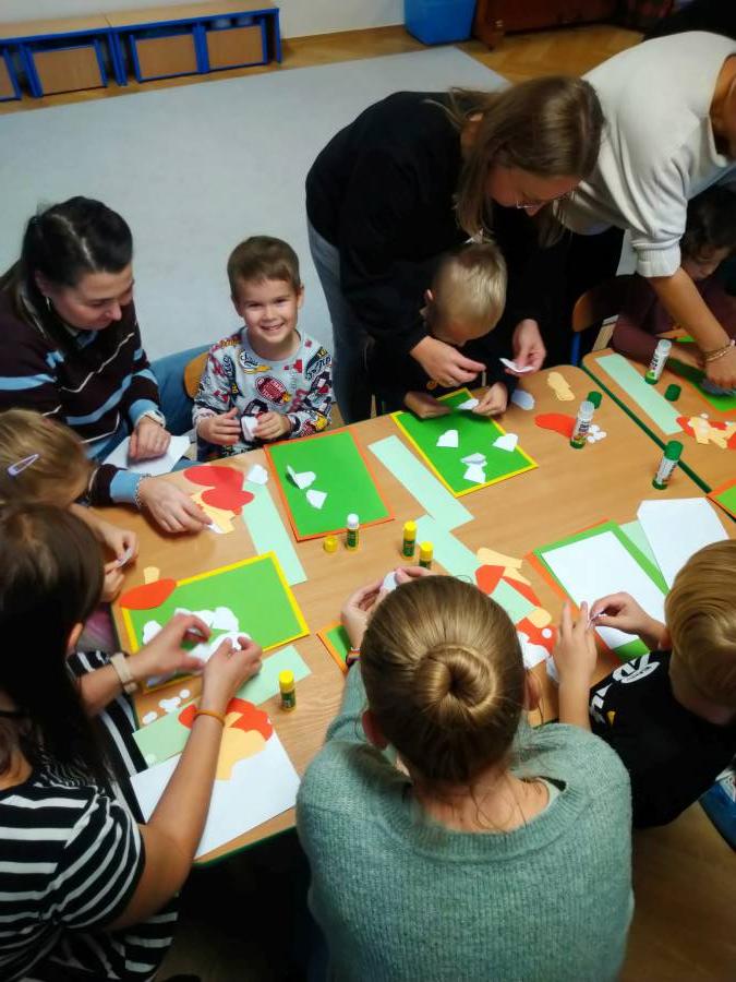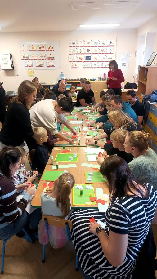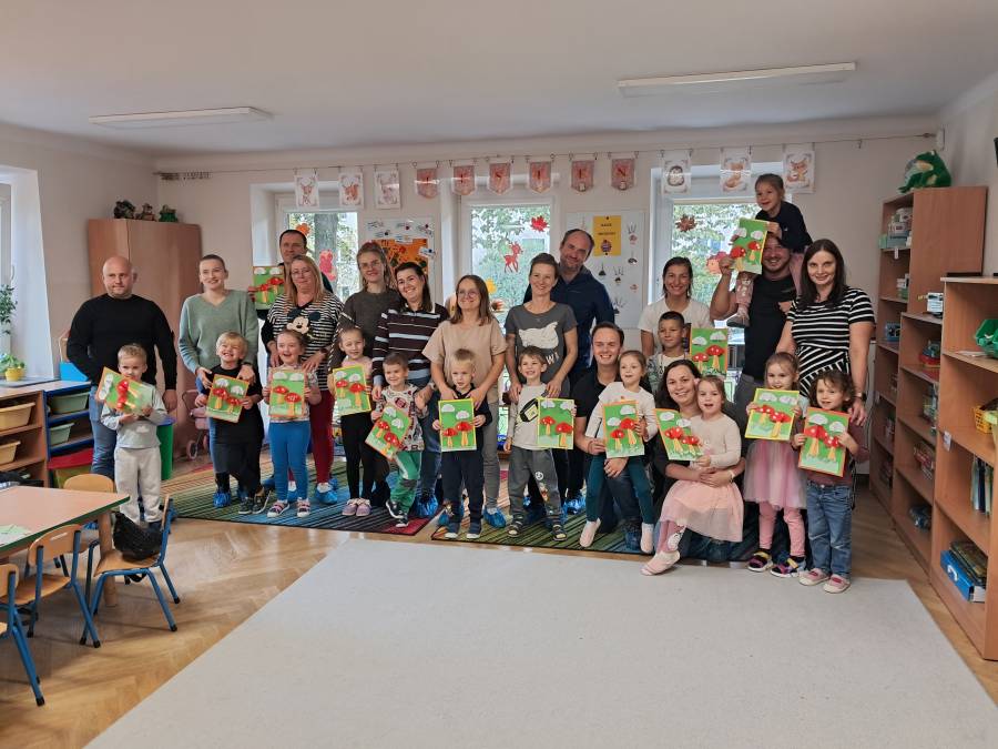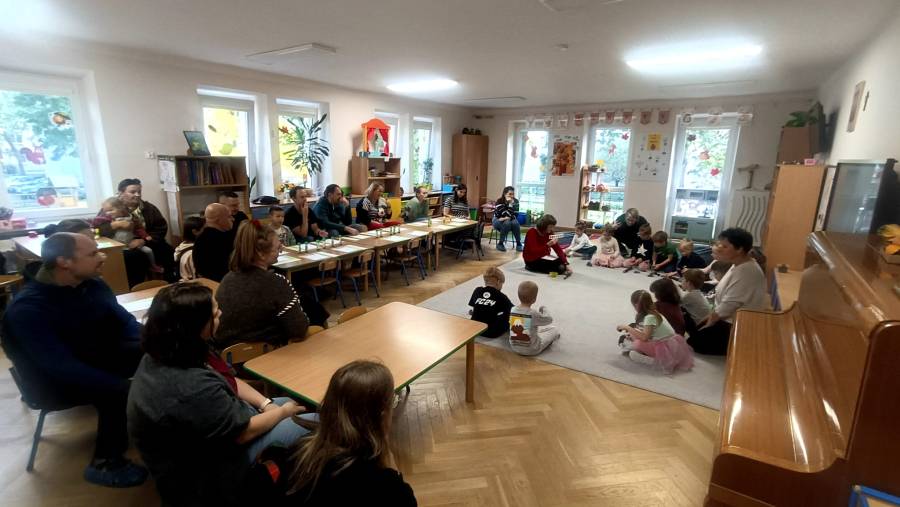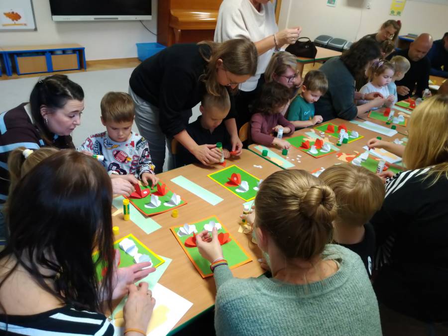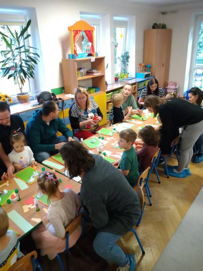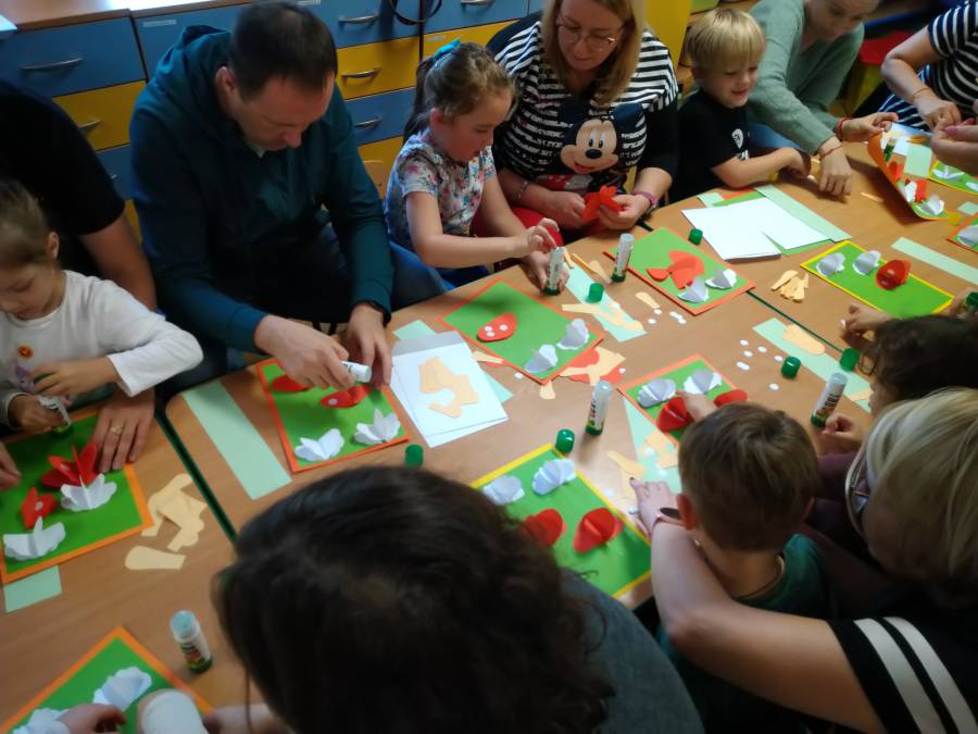 Jedną z form współpracy z rodzicami jest prowadzenie zajęć otwartych. Możliwość uczestniczenia w tego rodzaju zajęciach daje rodzicom obraz pracy nauczyciela z dzieckiem, pokazuje stosowane metody i formy pracy. Każdy z rodziców miał możliwość zaobserwowania swojego dziecka na tle grupy rówieśniczej. Celem zajęć w grupie Żabek było zaprezentowanie przez dzieci swojej wiedzy i umiejętności do tematu Pani Jesień dary niesie, a także zintegrowanie dzieci i rodziców. Przedszkolaki miały okazję pokazać swoim rodzicom jak się uczą poprzez zabawę i ile już potrafią. Zajęcia przebiegły w miłej atmosferze, Żabki chętnie pracowały pod kierunkiem nauczyciela oraz ze zrozumieniem słuchały poleceń. Dziękujemy rodzicom za to, iż mimo wielu obowiązków przybyli do przedszkola, aby towarzyszyć swoim dzieciom w tym wyjątkowym dniu.
