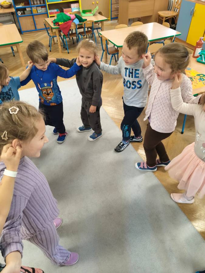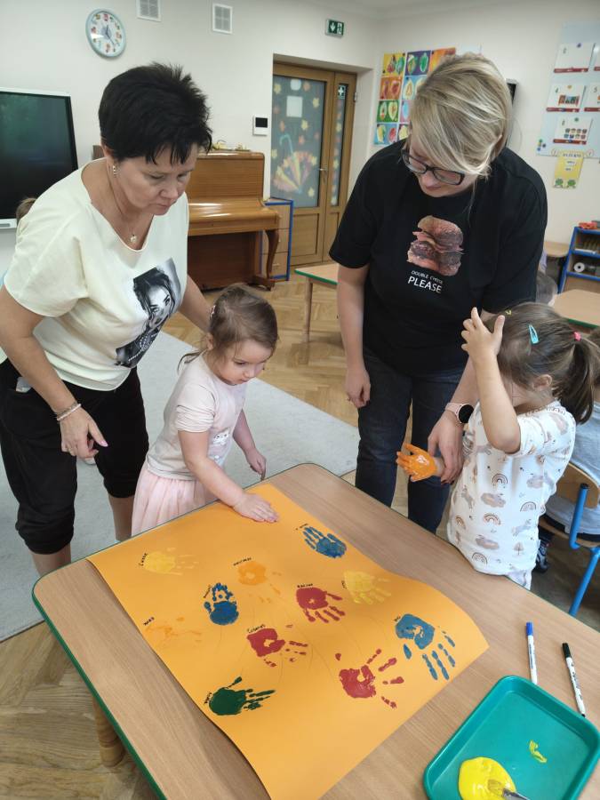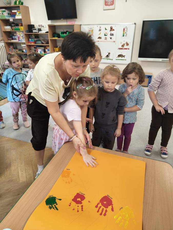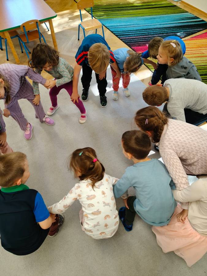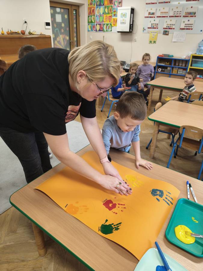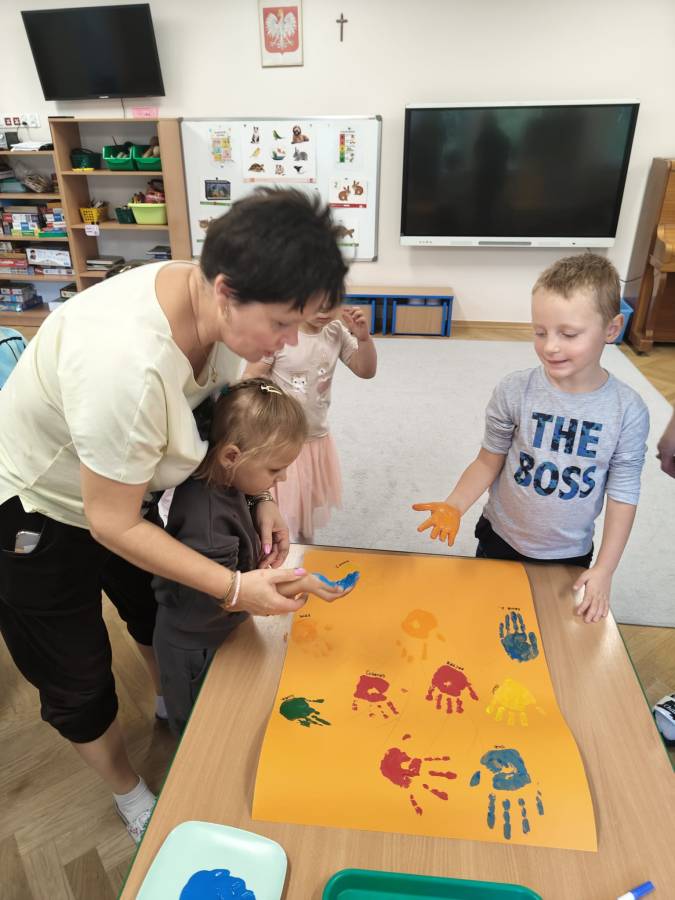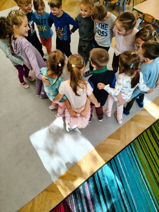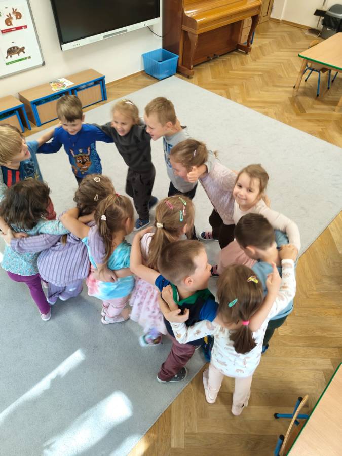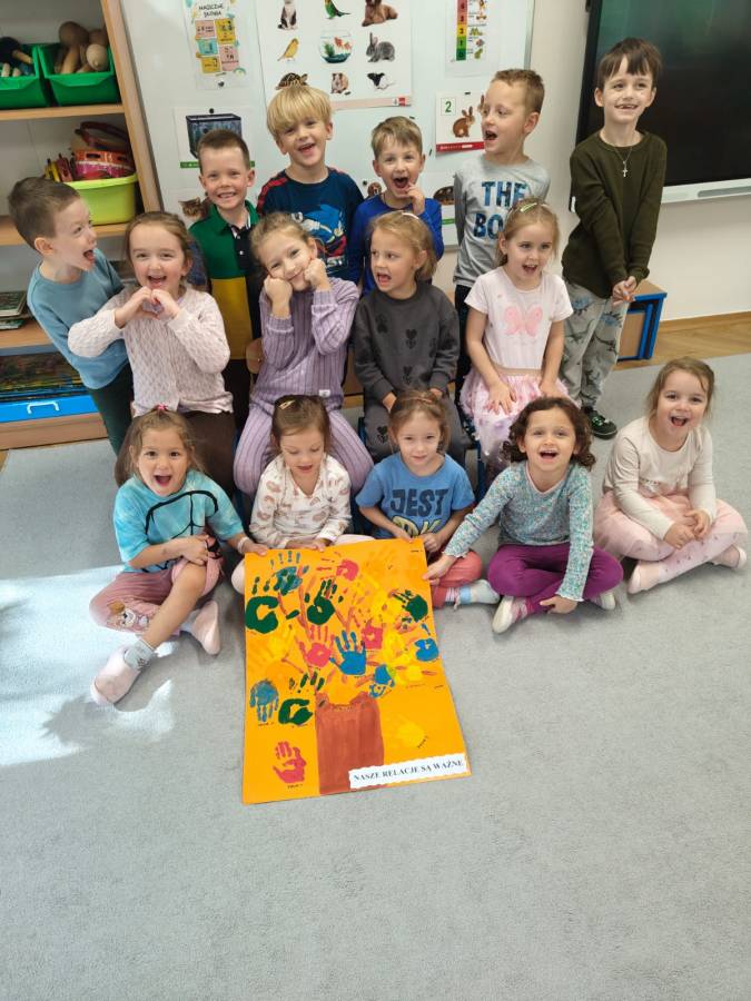 Tydzień budowania relacji w dniach od 29.09 do 02.10 to był bardzo ważny czas dla naszej grupy. Każdego dnia odbywały się pogadanki, gry, zabawy integracyjne oraz krótkie filmy edukacyjne o relacjach i przyjaźni koleżeńskiej. Celem tych zajęć było wzmocnienie więzi między dziećmi, kształtowanie umiejętności współpracy, empatii i wzajemnego szacunku oraz zapobieganie przemocy rówieśniczej. Zwieńczeniem naszych działań było wspólne wykonanie plakatu pt. Nasze relacje są ważne.