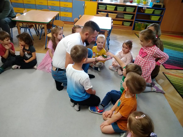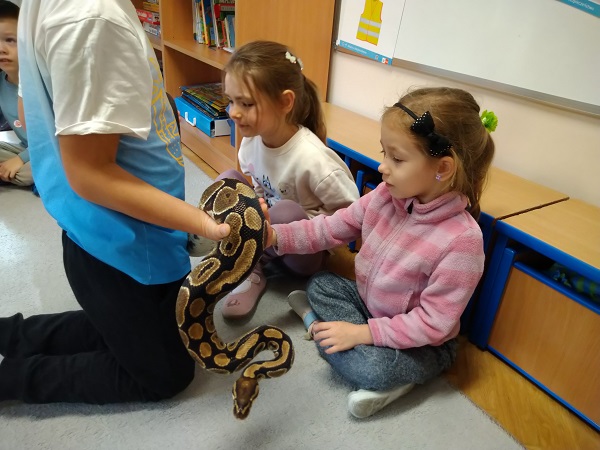 Dzieci z grupy Żabek miały możliwość uczestniczyć w zajęciach pokazowych ze zwierzętami, które były prowadzone przez rodzica naszego przedszkolaka pana Daniela. Podczas warsztatów dzieci dowiedziały się więcej na temat życia tych zwierząt oraz zobaczyły je z bliska. To było wspaniałe doświadczenie dla naszych Żabek.