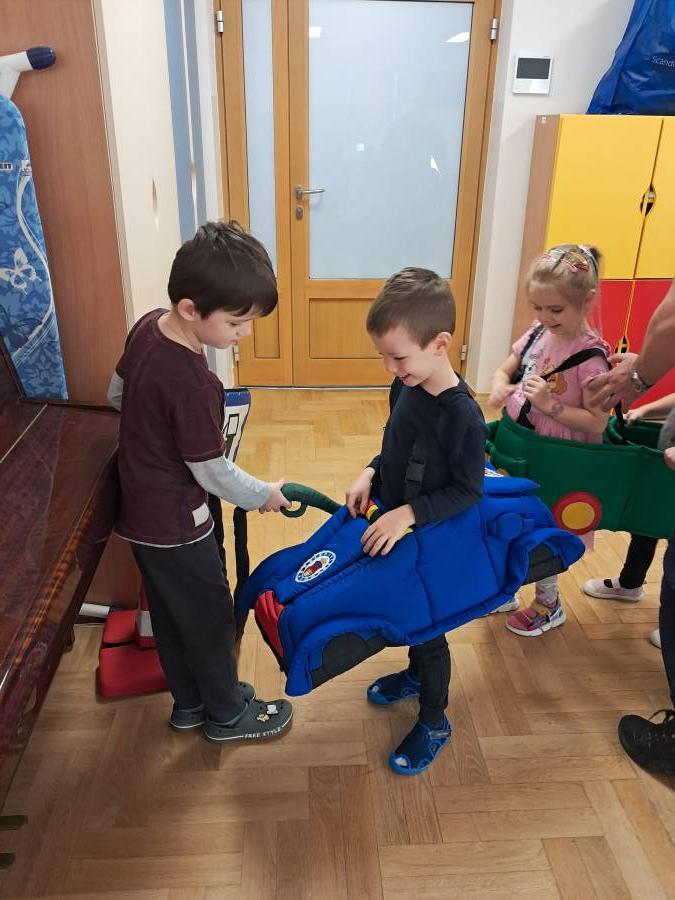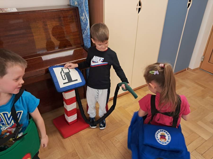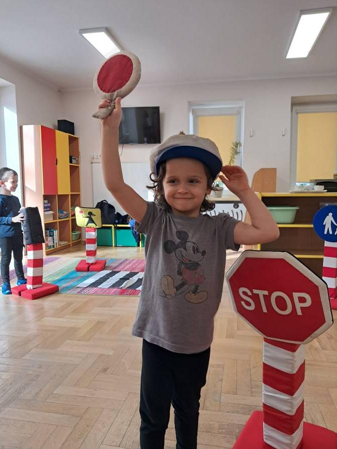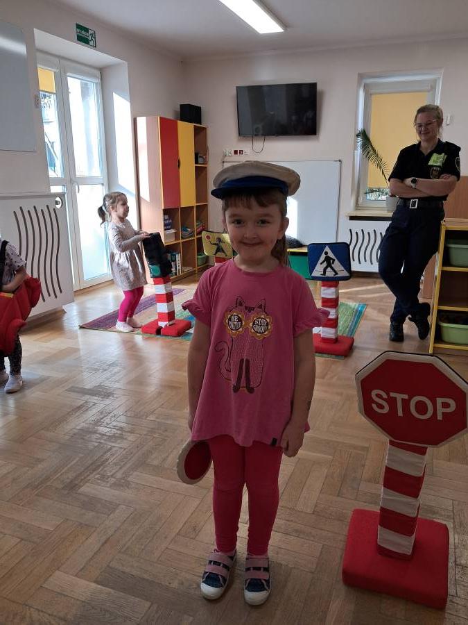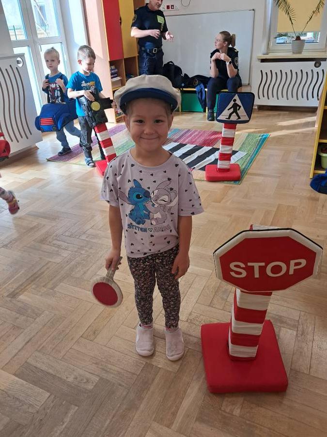 Dnia 30 października 2025r. w naszym przedszkolu mieliśmy okazję gościć na zajęciach funkcjonariuszy Straży Miejskiej. Celem przeprowadzonych zajęć było poszerzenie wiedzy wśród przedszkolaków na temat obowiązujących zasad bezpieczeństwa na ulicy. Poprzez wspaniałą zabawę w "miasteczku ruchu drogowego" Żabki utrwaliły zasady bezpiecznego poruszania się po drodze przy pomocy "autochodzików". W podziękowaniu za atrakcyjne zajęcia i miłą atmosferę przedszkolaki wręczyły podziękowanie funkcjonariuszom.