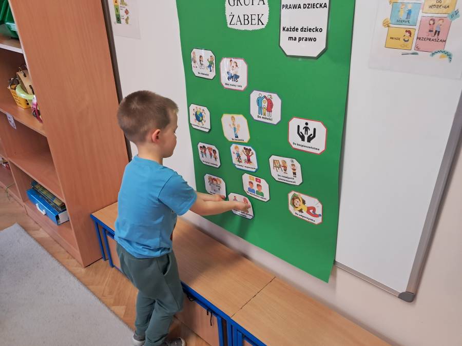20 listopada to wyjątkowy dzień - Międzynarodowy Dzień Praw Dziecka. Jest to moment, w którym uwaga wszystkich kierowana jest na dzieci i ich prawa. Ważnym elementem wychowania przedszkolnego jest kształtowanie u dzieci świadomości ich własnych praw, uczenie poszanowania praw innych i radzenie sobie w sytuacjach naruszania własnych praw. W grupie Żabek zostały przeprowadzone zajęcia o prawach dziecka z wykorzystaniem ciekawych materiałów edukacyjnych oraz odbyły się rozmowy na ten temat. Podsumowaniem zajęć było wykonanie przez Żabki plakatu z prawami dziecka.