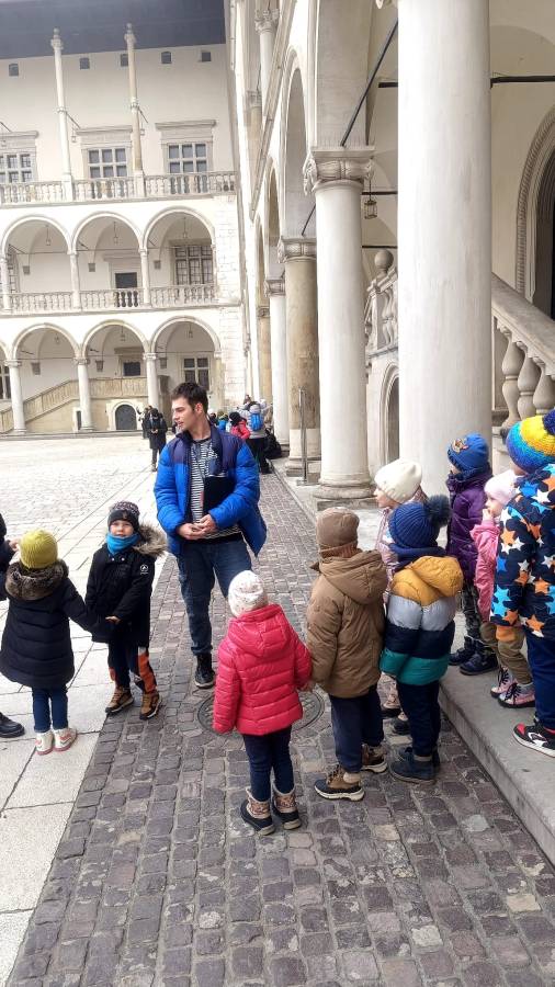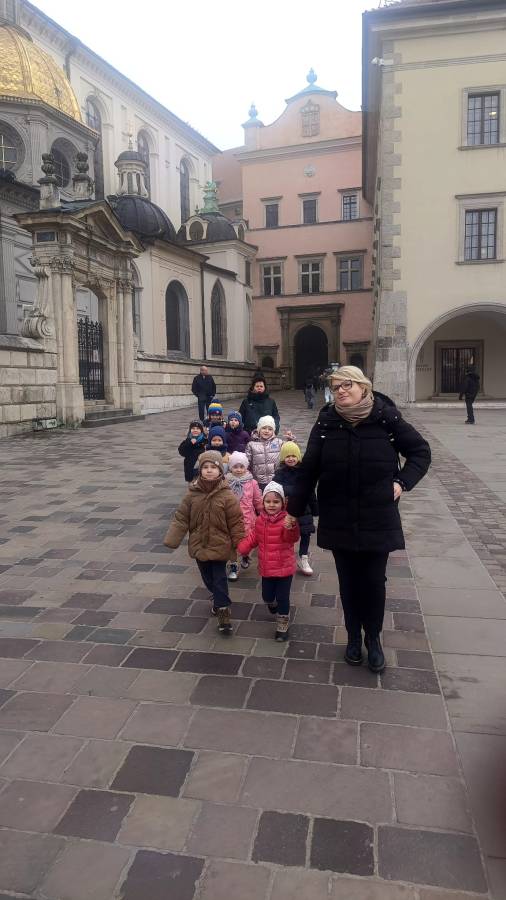 Dnia 16 grudnia Żabki wyruszyły na wycieczkę do Zamku Królewskiego na Wawelu, w celu uczestniczenia w lekcji muzealnej pt. Legendy wawelskie. Zajęcia pod kierunkiem przewodnika miały na celu zaznajomienie przedszkolaków z historią oraz legendami wzgórza wawelskiego, polską kulturą i wybranymi dziełami sztuki.