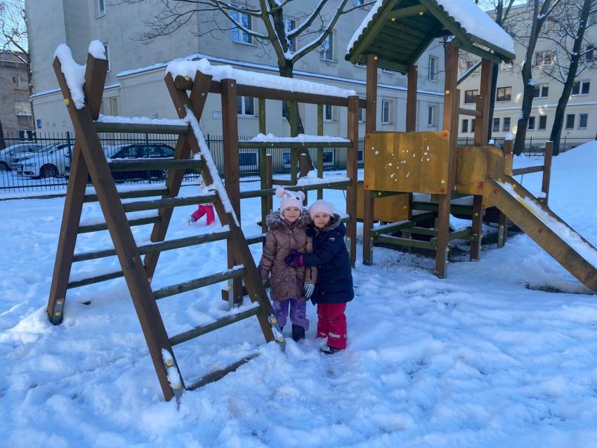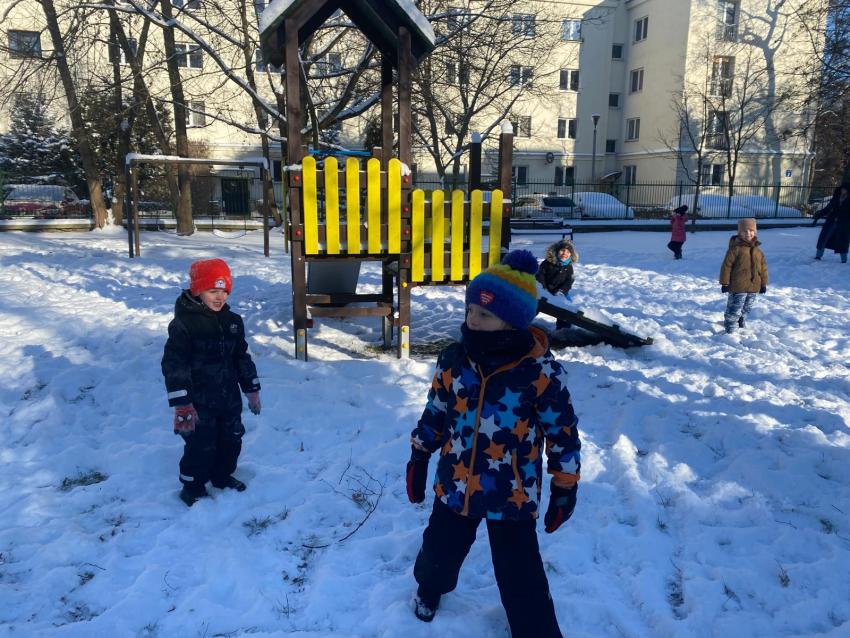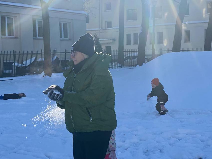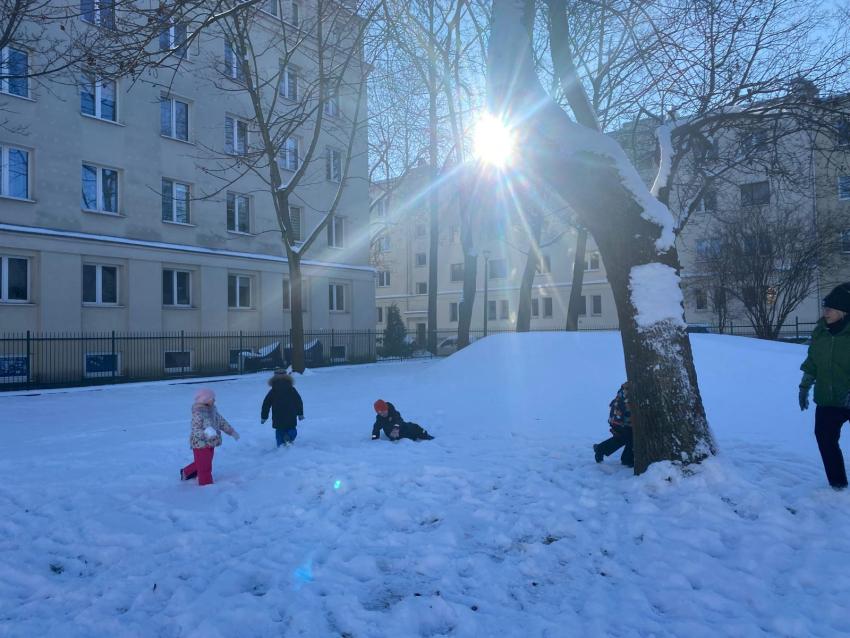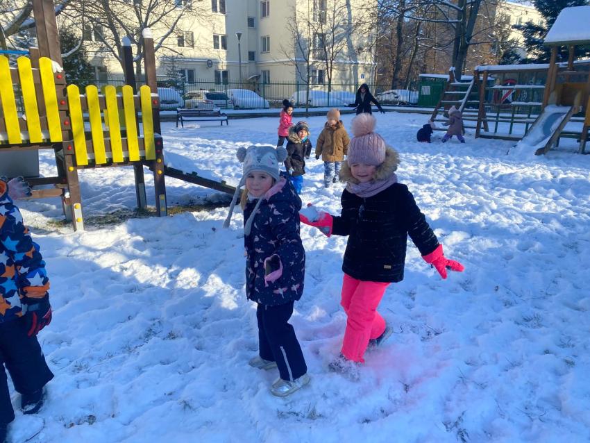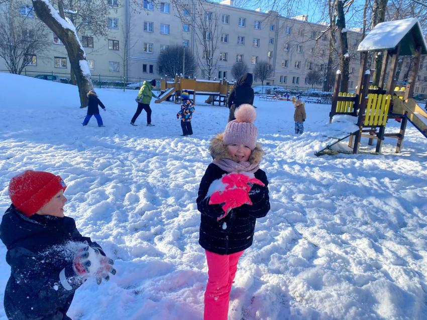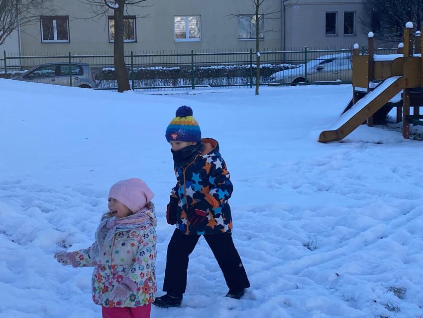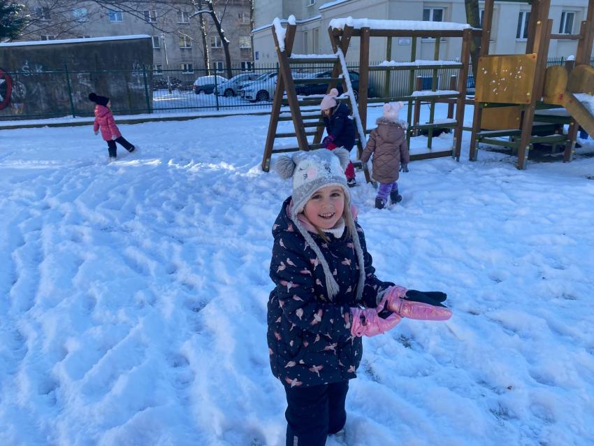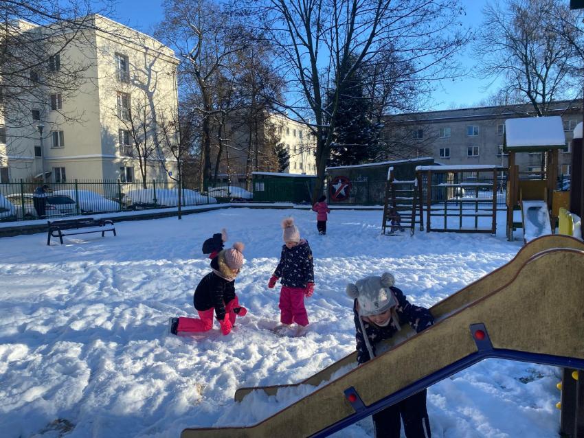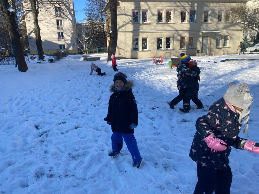 Zimowe zabawy na śniegu- grupa Żabki