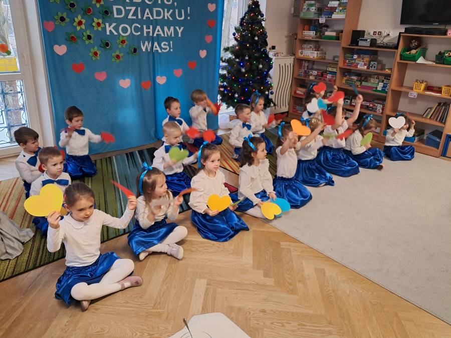 Z okazji Dnia Babci i Dziadka Żabki przygotowały wyjątkowy, pełen radości i wzruszeń występ artystyczny. Mali artyści grali na instrumentach , zaprezentowali wierszyki, piosenki, a także zatańczyli z serduszkami. Występ były wyrazem ich miłości, wdzięczności i szacunku dla ukochanych dziadków.