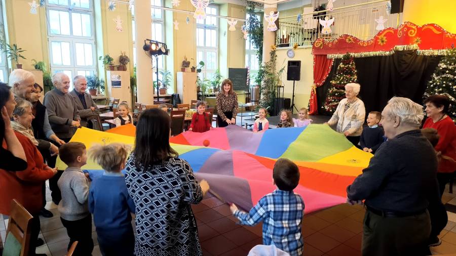 Dnia 30 stycznia, Żabki wybrały się do Krakowskiego Centrum Seniora na os Szkolnym. Było to wyjątkowe spotkanie międzypokoleniowe, podczas którego przedszkolaki zaprezentowały występ z okazji Dnia Babci i Dziadka. Występ dostarczył wszystkim seniorom wielu wzruszeń i radosnych chwil. Następnie odbyły się wspólne zabawy, rozmowy, wspólny poczęstunek, podczas których dzieci i seniorzy mogli spędzić czas razem, dzieląc się radością i dobrym humorem. Spotkanie było doskonałą okazją do budowania więzi międzypokoleniowych, kształtowania u dzieci postaw szacunku i wdzięczności wobec osób starszych oraz podkreślenia, jak ważną rolę w życiu dzieci odgrywają seniorzy. Zapraszamy do fotorelacji z tego wydarzenia.