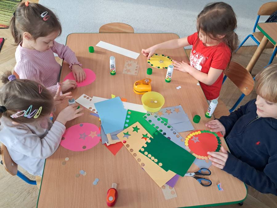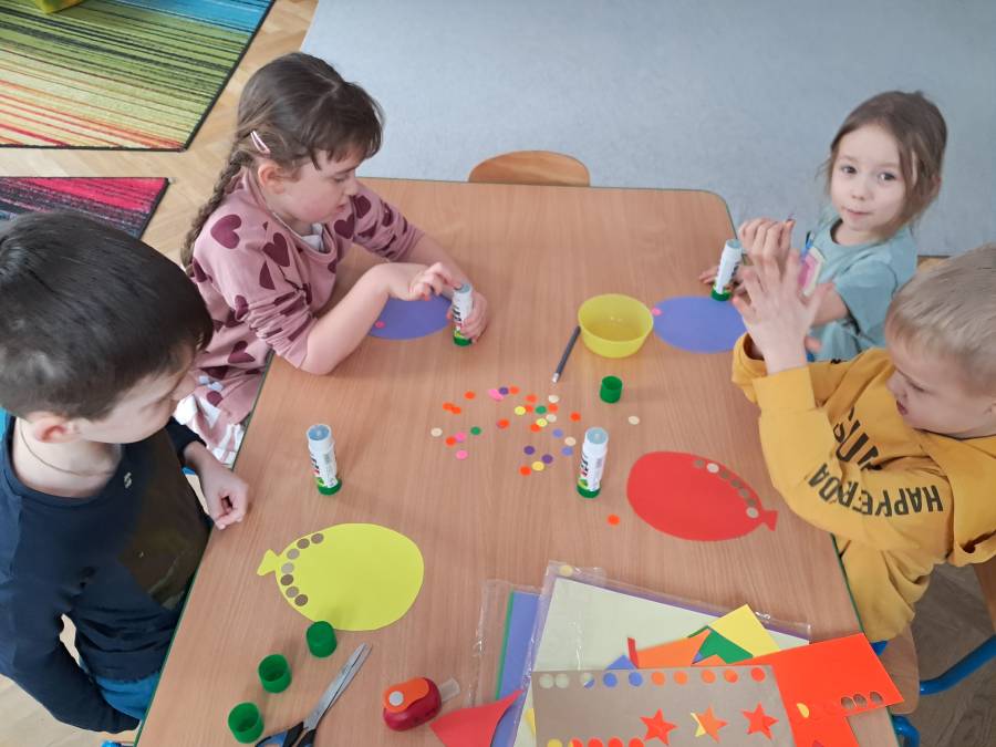 Żabki wiedząc, że w naszym przedszkolu odbędzie się bal karnawałowy, przygotowały dekorację z tej okazji.