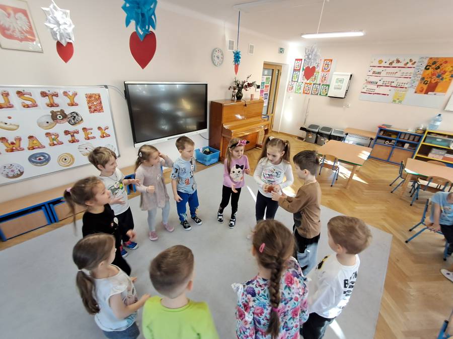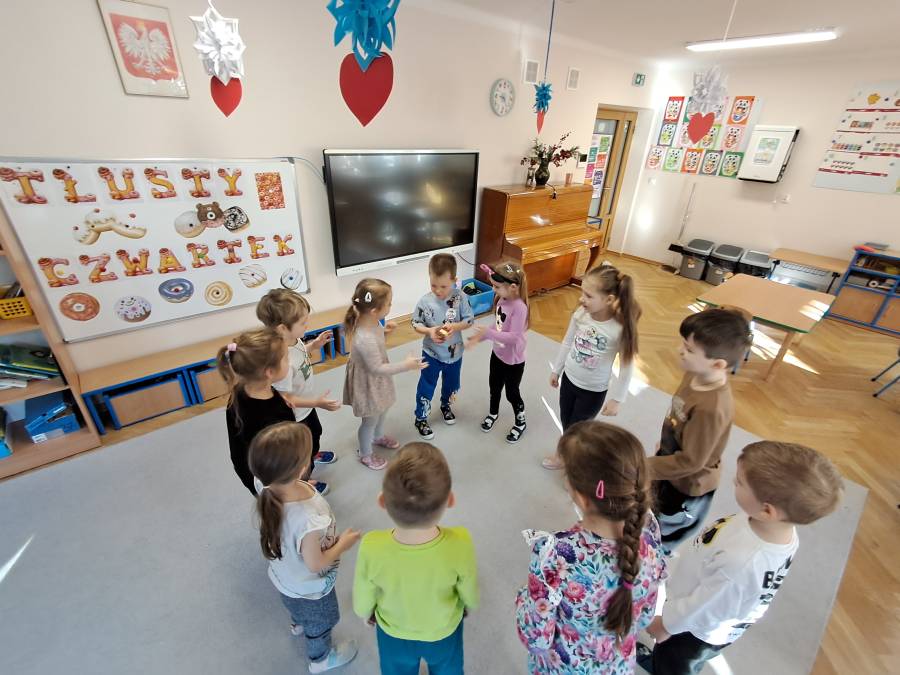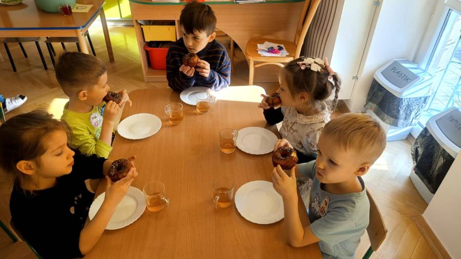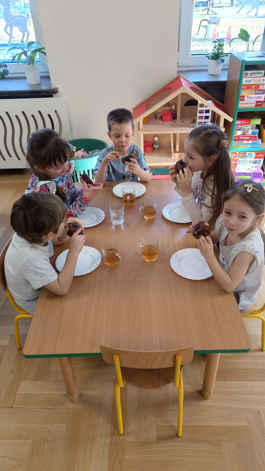 Karnawał to czas uczt i zabaw. W grupie Żabek obchodzony był Tłusty Czwartek. Dzieci w tym dniu poznały tradycję i obrzędy związane z tym świętem. Odbyły się zabawy muzyczne i taneczne, zabawa Gorący pączek oraz najpyszniejsza zabawa plastyczna PĄCZKI. Oczywiście w tym dniu nie mogło zabraknąć słodkiego poczęstunku, za które bardzo serdecznie dziękujemy naszym paniom z kuchni p. Agatce, p. Bożence oraz p. Beatce.