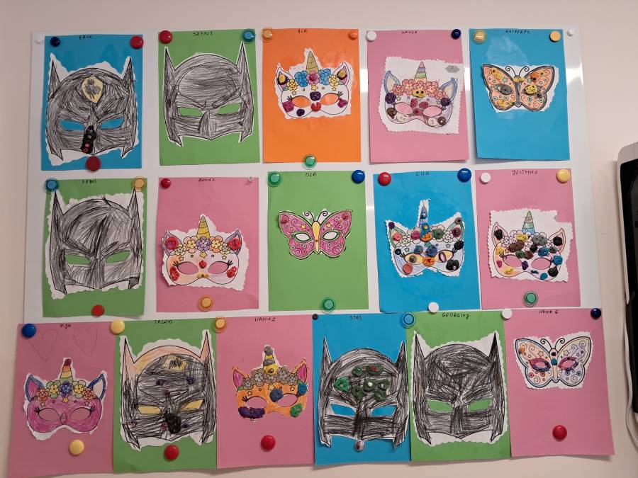 Żabki wiedząc, że w naszym przedszkolu odbędzie się bal karnawałowy, przygotowały dekorację z tej okazji.